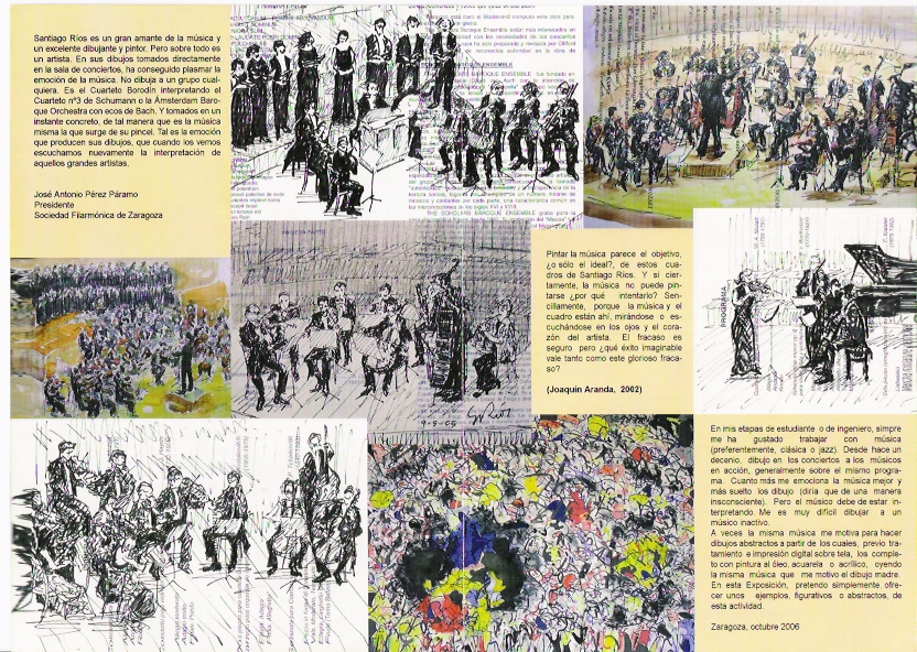 In this exhibition I presented 40 paintings that had been inspired by my attendance to classical music concerts, mainly at the Auditorium of Zaragoza. I would like to thank the Philharmonic Society of Zaragoza, which, in the year of its 100th anniversary, sponsored the catalogue for this exhibition.