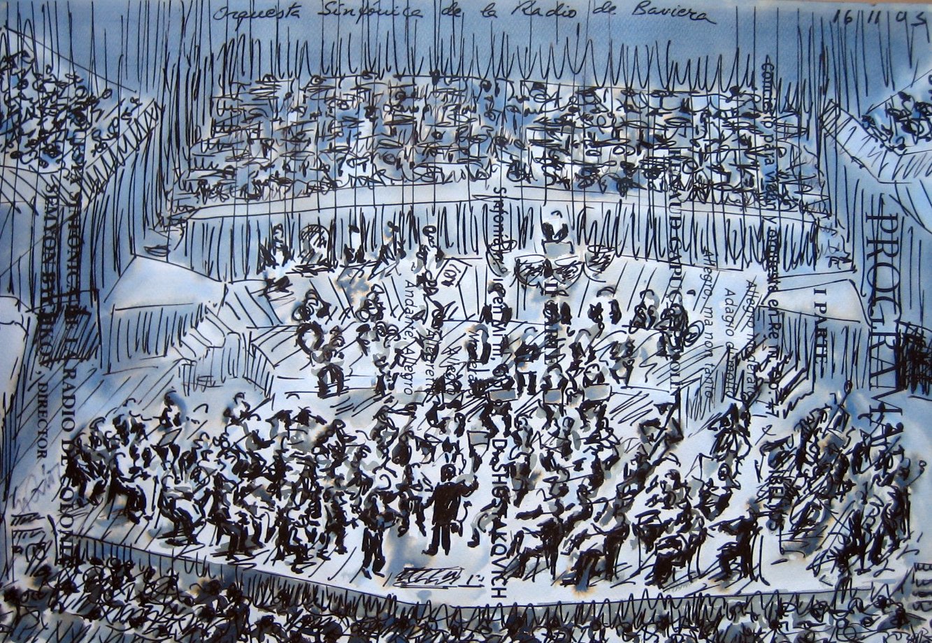 Bavarian Radio Symphony Orchestra, 70x100cm, ink, digital treatment and printing and wash painting