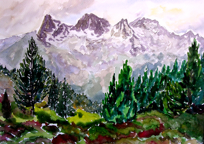 Argualas from Brazato stream, summer 2004, watercolour 50 x 70 cm