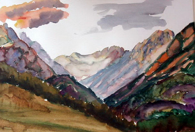 Maladetas from the Posets peak, watercolour 23 x 31 cm, 2000