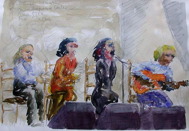 Carmen Linares is singing, watercolor 50 x 70 cm