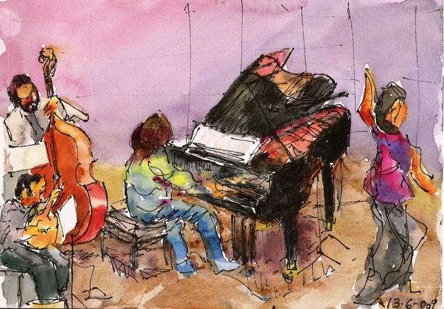 & Manuel Parrilla (guitar), ink and watercolor 21x30 cm, 2011