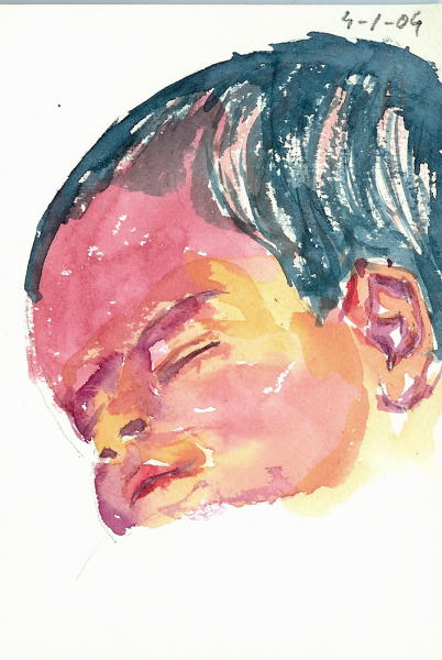 My nice Santi when he was ten days old, watercolor, 12 x 18 cm, 2004