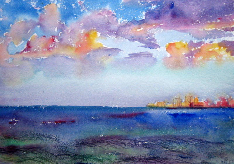 Dusk at Club Habana, watercolor, 24 x 35 cm