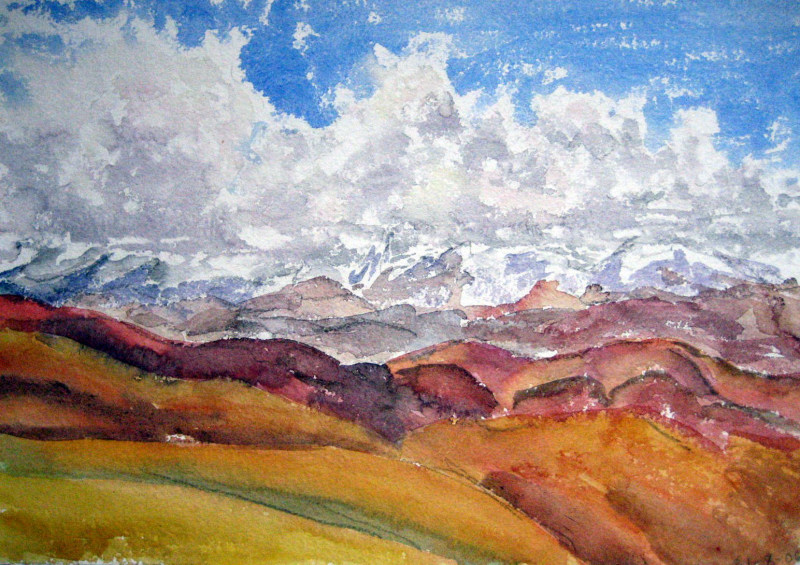 Landscape from the Thong La (5120 m), watercolor, 35 x 51 cm