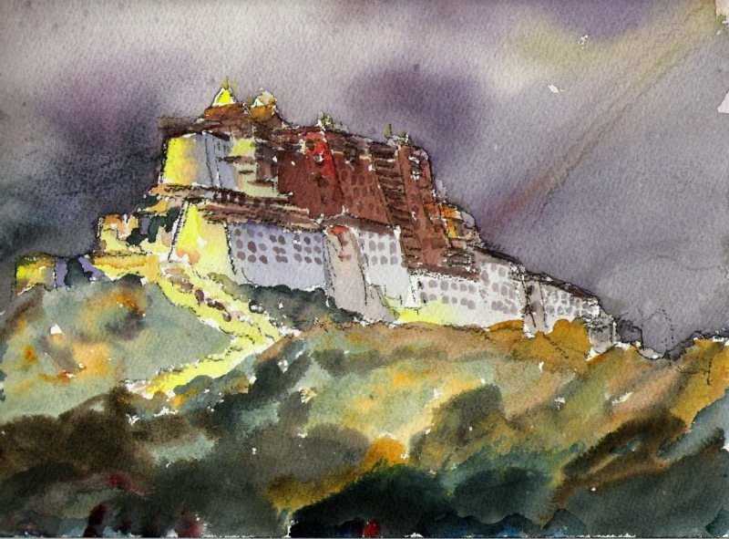 Potala Monastery, watercolor, 23 x 62 cm