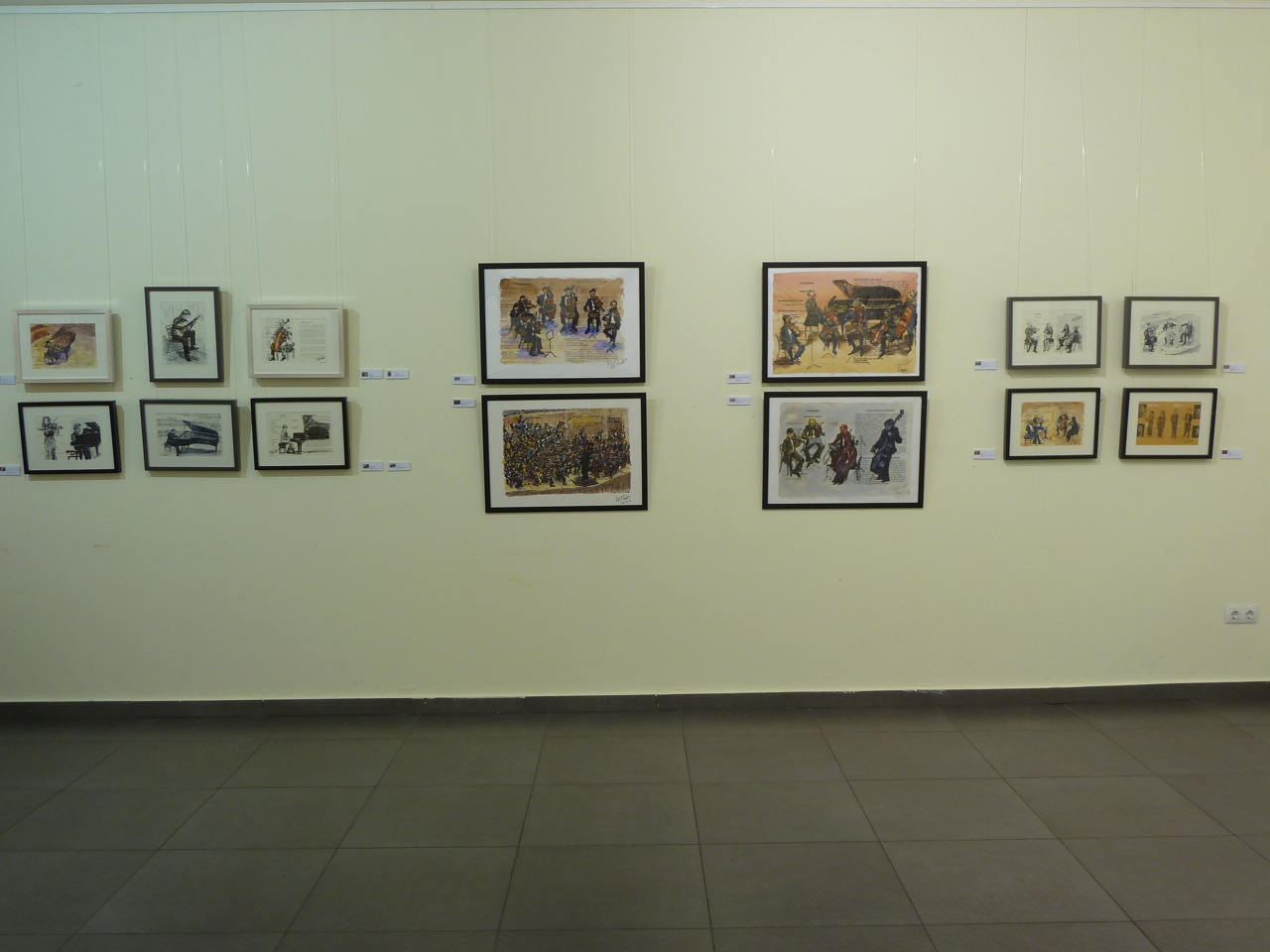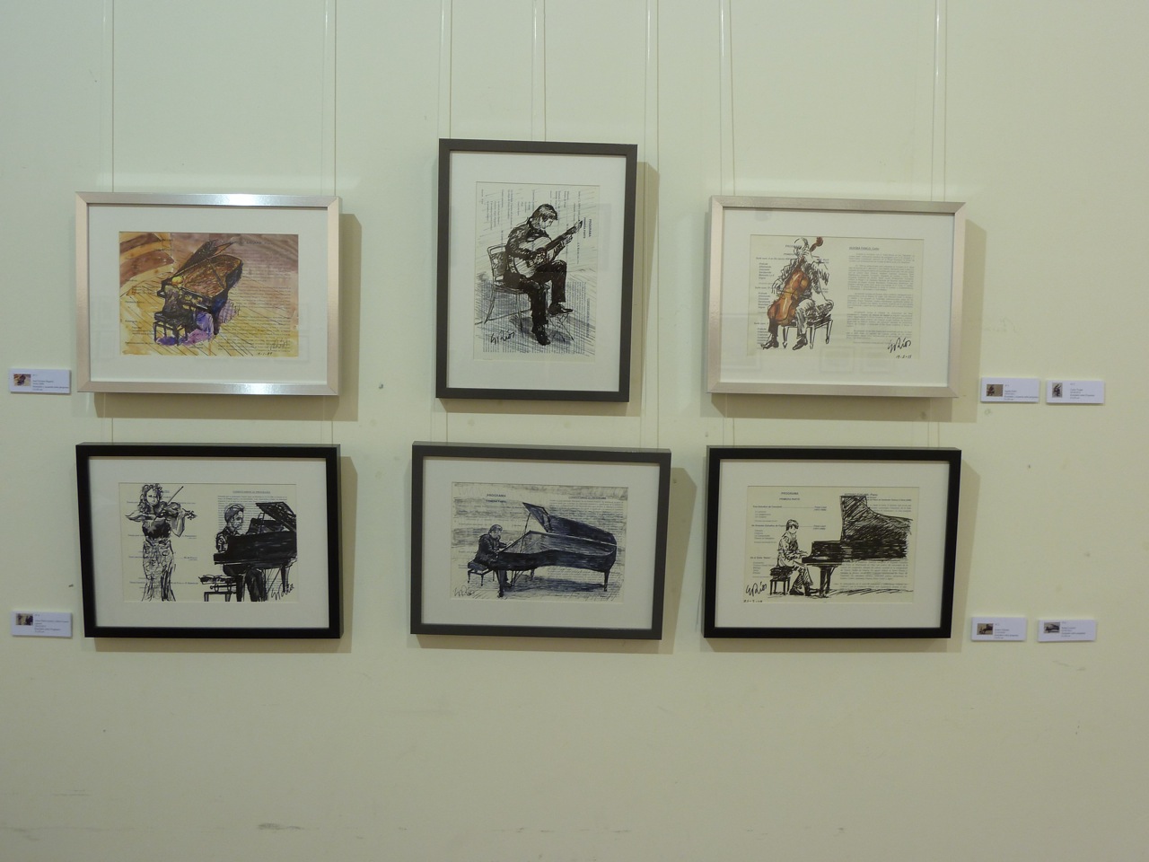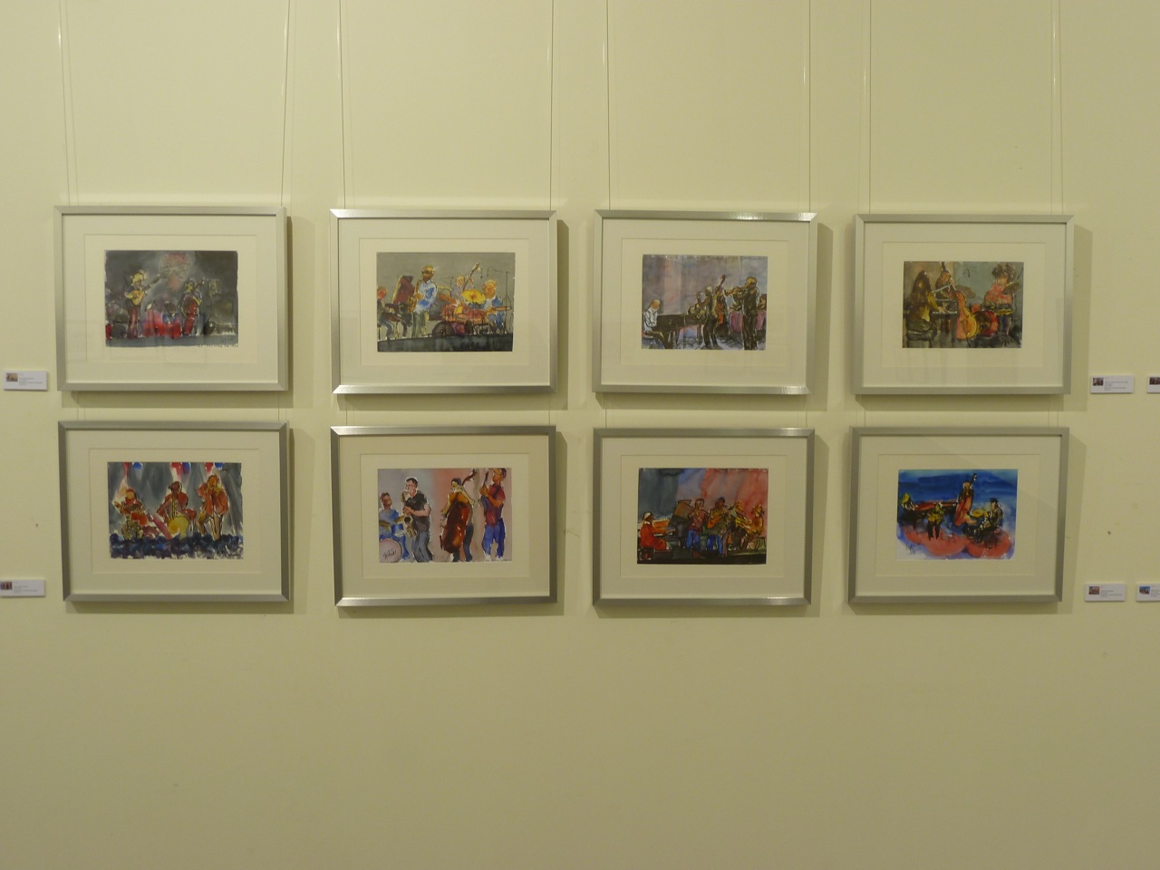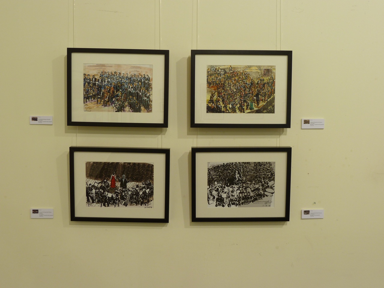 En esta exposición presenté 57 cuadros relacionados con la música clásica, jazz, flamenco o con la música étnica africana. La mayoría de ellos están hechos en directo, en algunos casos, sobre el programa del concierto. Algunos de los cuadros de mayor formato fueron hechos en mi Estudio con diferentes técnicas: acuarela, acrílico u óleo. Edité un CATÁLOGO con la reproducción de alguno de los cuadro expuestos y con texto de Antón Castro. El Heraldo de Aragón se hizo eco de la efemérides publicando un artículo del mismo periodista el día de la inauguración. Mi agradecimiento al coro de cámara Modus Novus, al que pertenezco, que actuó en la inauguración de la Exposición con un par de canciones.