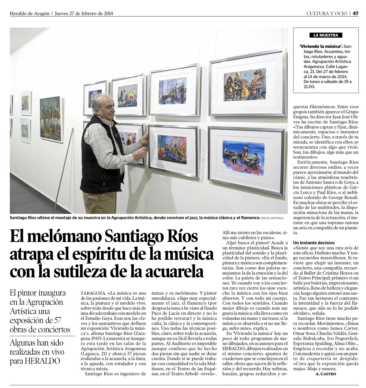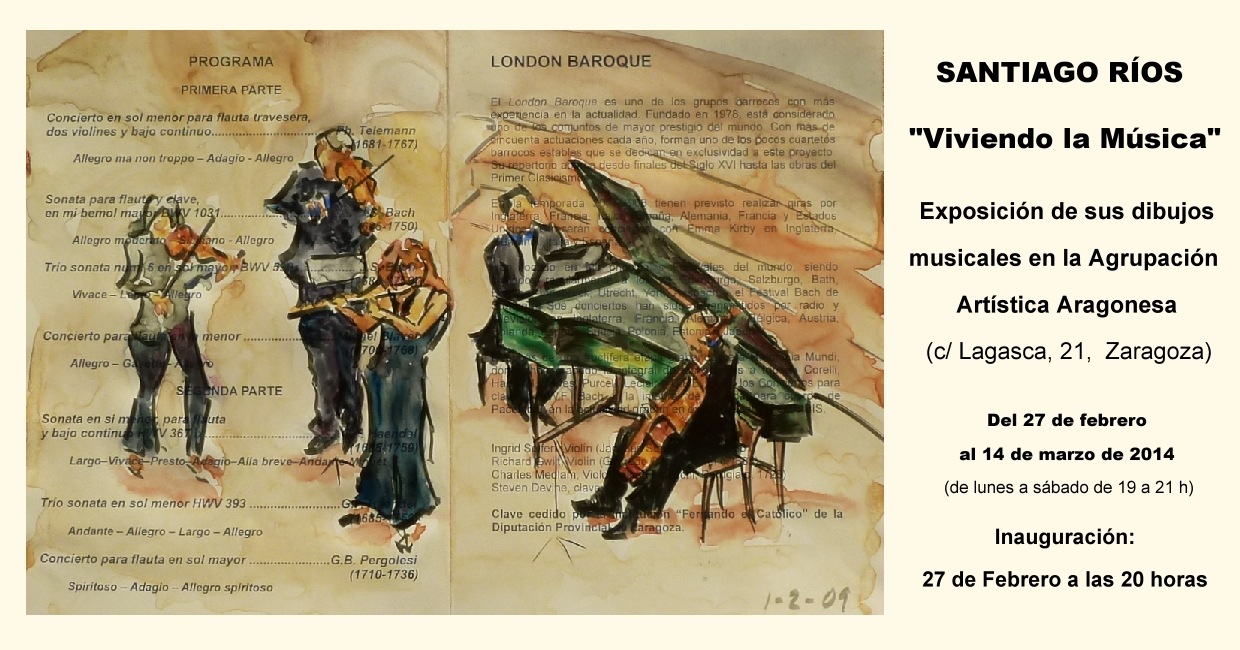 EXPOSICIÓN EN LA SALA DE LA AGRUPACIÓN ARTÍSTICA ARAGONESA (del 27 de febrero al 14 de marzo de 2014) SANTIAGO RIOS "VIVIENDO LA MÚSICA" |