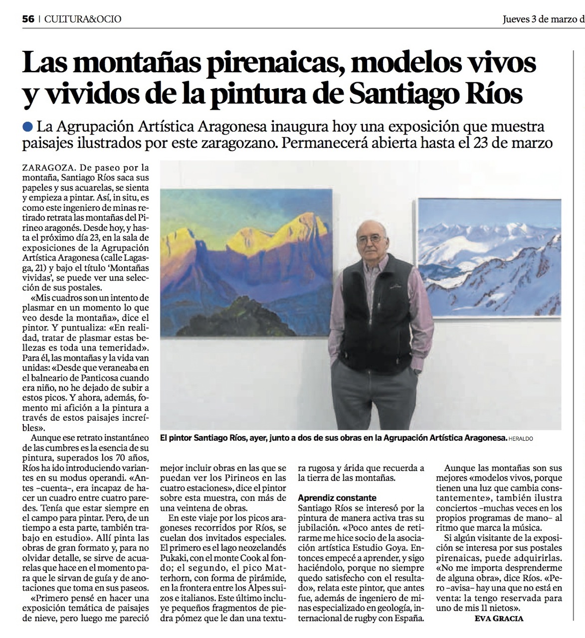 El día de la inauguración, fui noticia en varias secciones del Suplemento de Artes y Letras del Heraldo de Aragón (3/3/2016) |