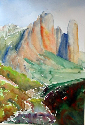 Las Maladetas desde el Posets, acuarela 23 x 31 cm, 2000