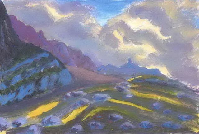 Puesta de Sol en Tendeñera, acrílico 25x35cm, 1998