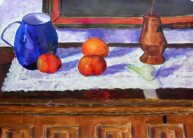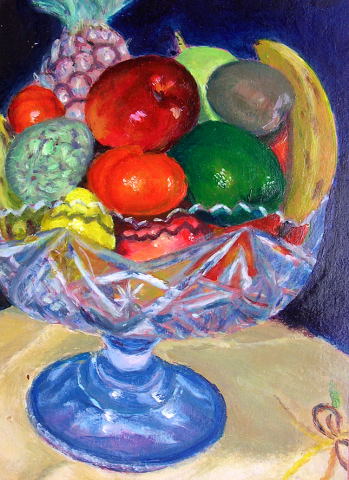 Frutero de la Nochevieja del 96 al 97, acrílico sobre tabla, 28 x 20cm, 1997