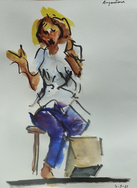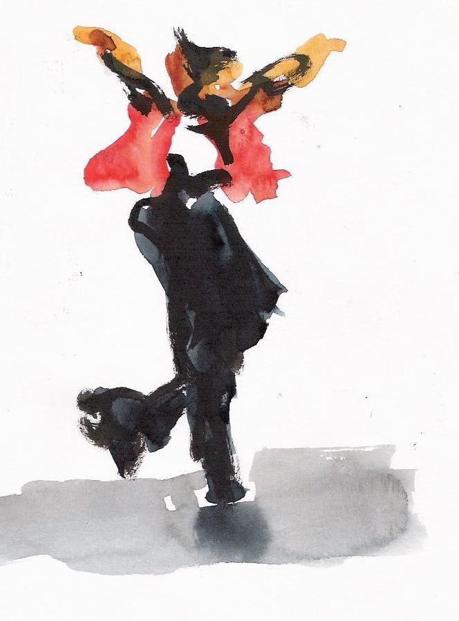Bailaor del Ballet Flamenco de Andalucía de Cristina Hoyos, tinta y acuarela, 21x15 cm |