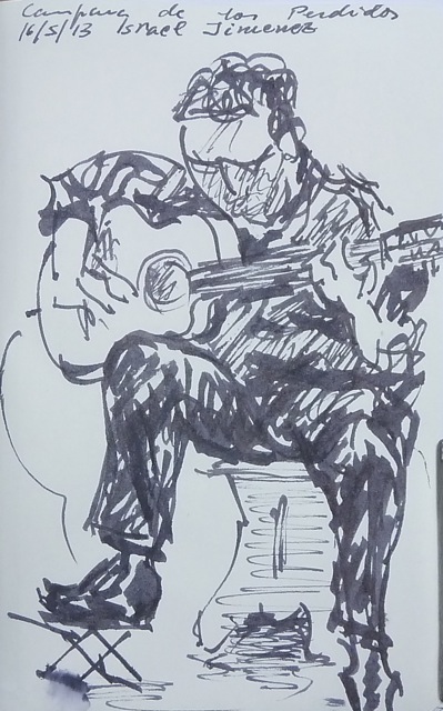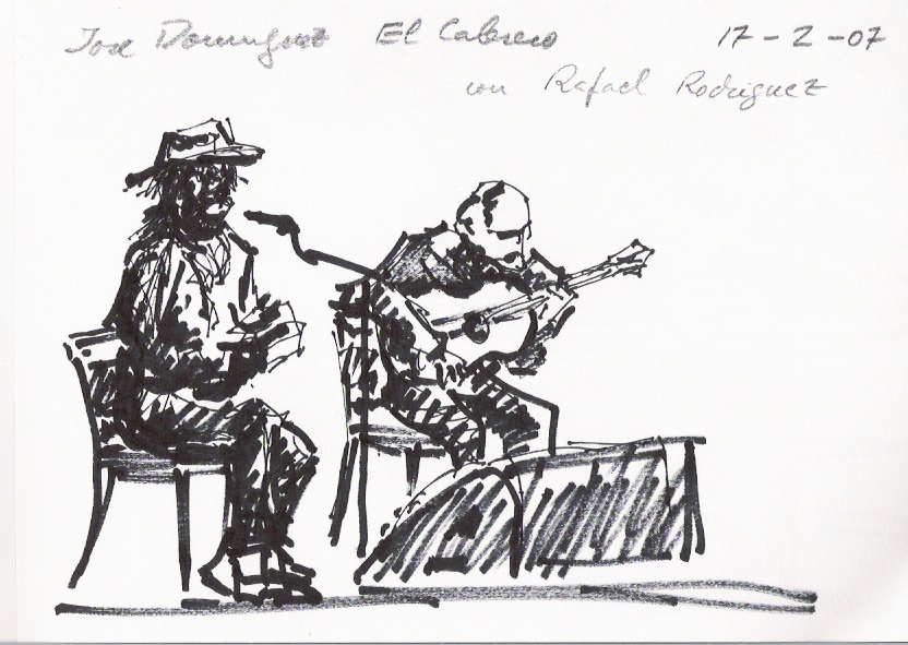 El Cabrero al cante, R. Rodriguez al toque, (Flamenco Zaragoza 2007), tinta, 15 x 21 cm |