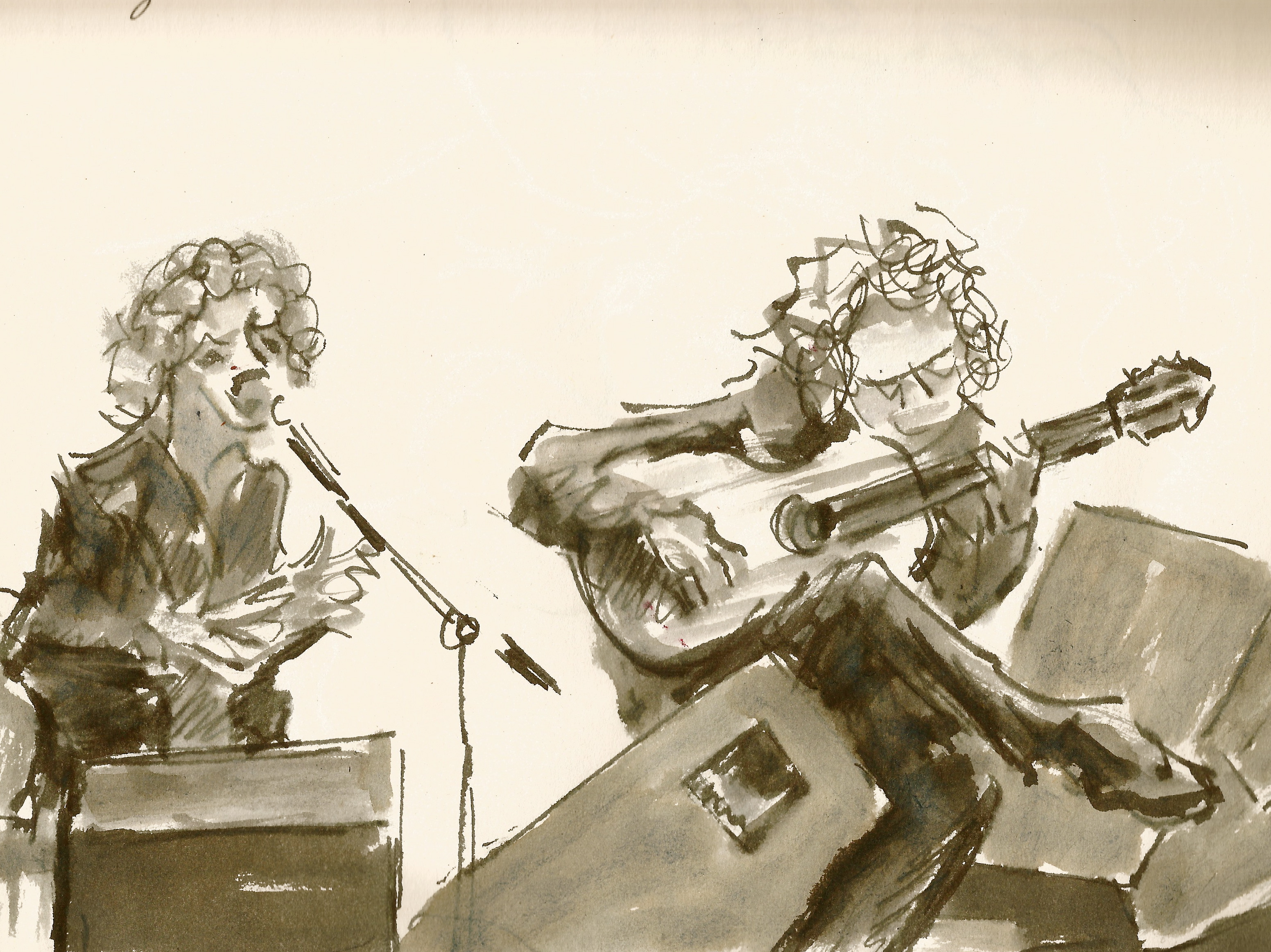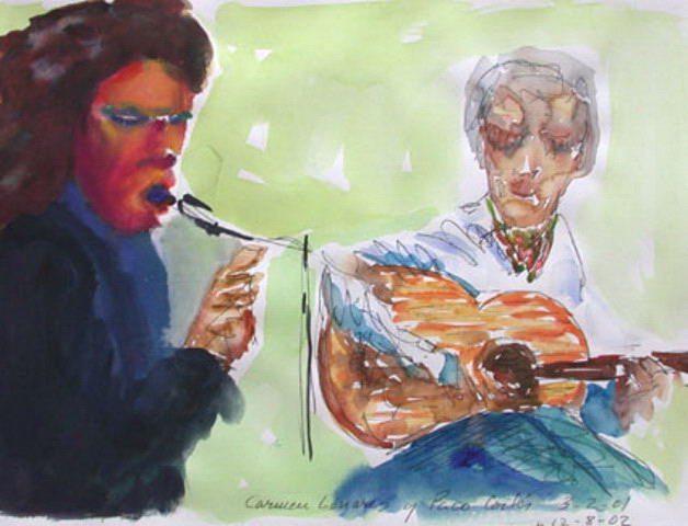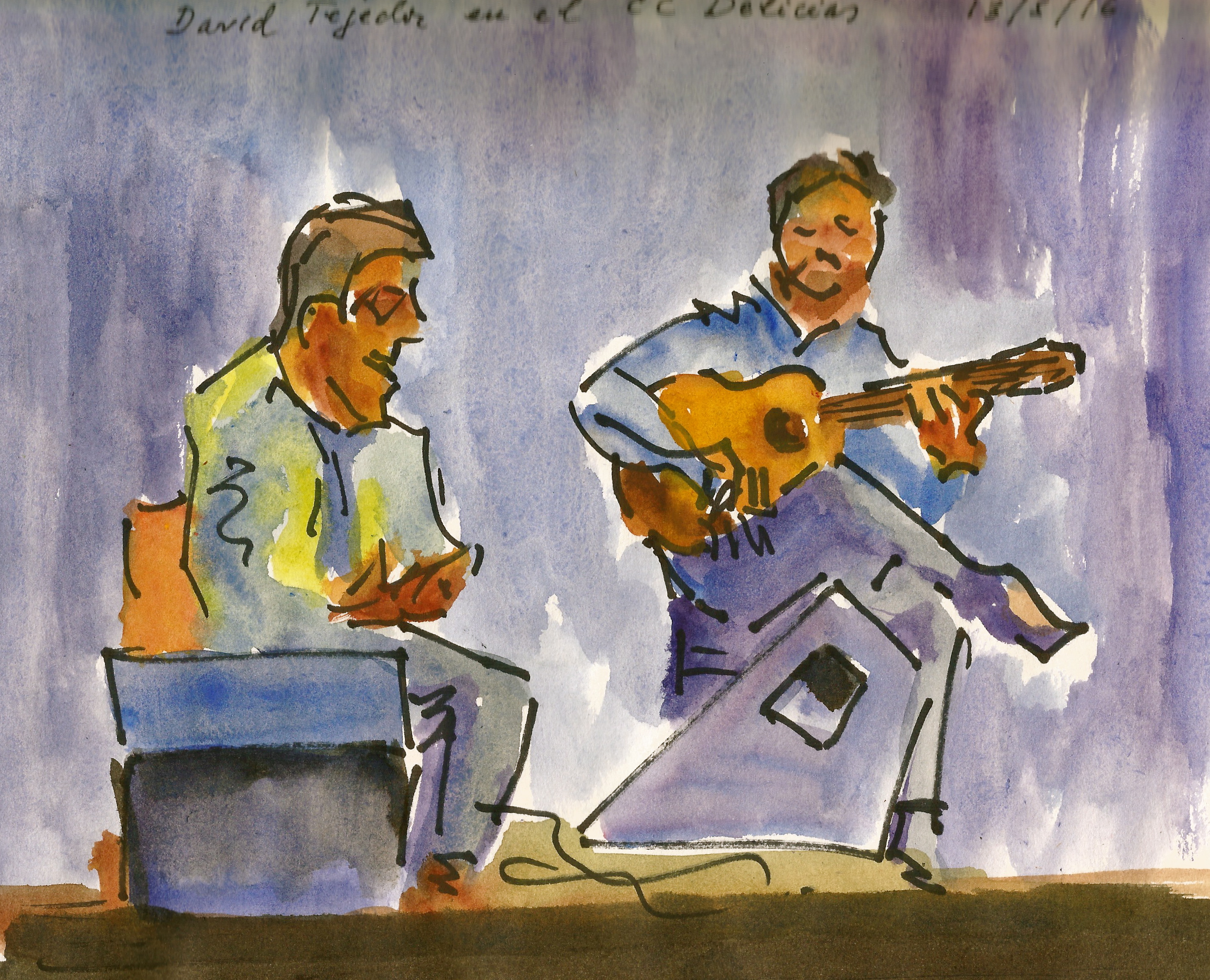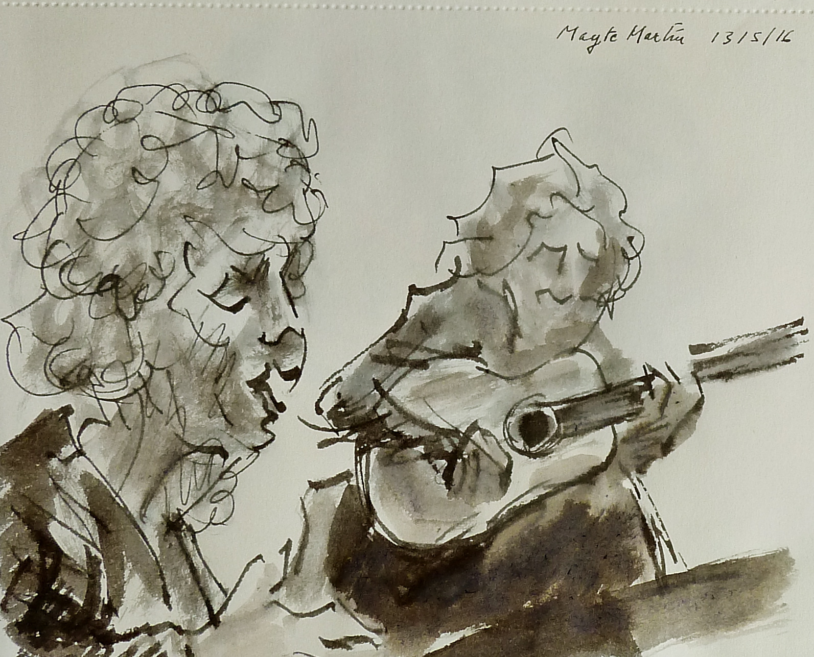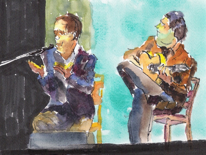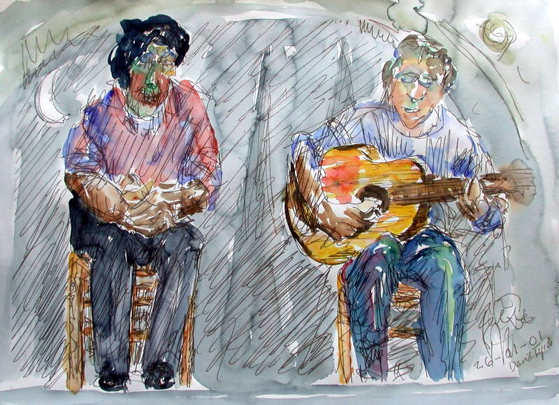 Pansequito al cante & Manuel Parrilla (guitarra), acuarela y tinta 21x30 cm, 2011