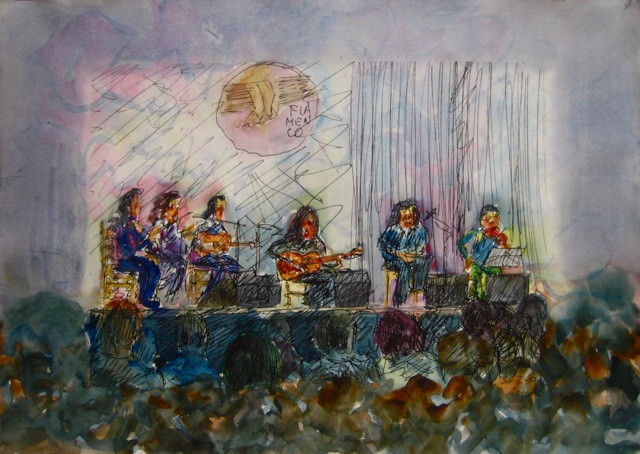 Argentina y José Quevedo en "Flamenco Zaragoza 2011", acuarela 24x32 cm