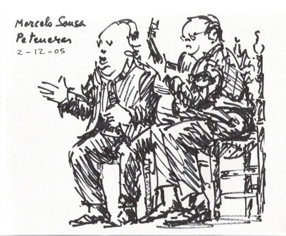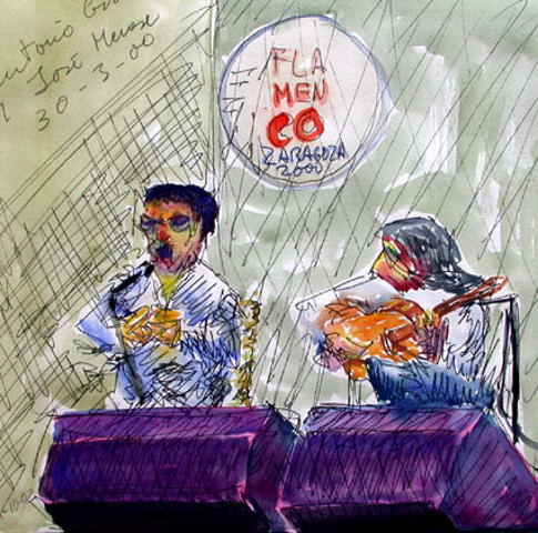 Tomás de Perrate al cante y Antonio Moya al toque, tinta, 15 x 21 cm, Zaragoza 2007