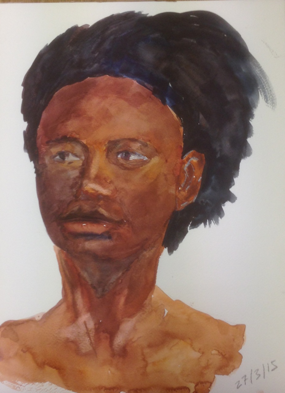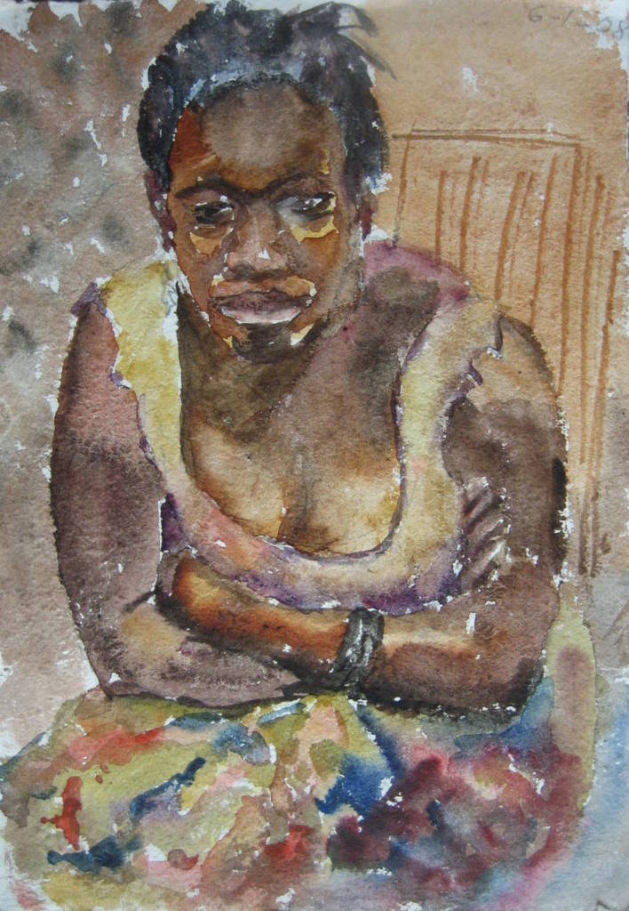 Traore Dj., acuarela 35 x 25 cm, mujer de Segou (Mali), 2008