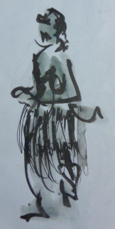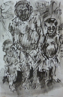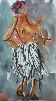 Danza de pigmeo, tinta y acuarela s cuaderno