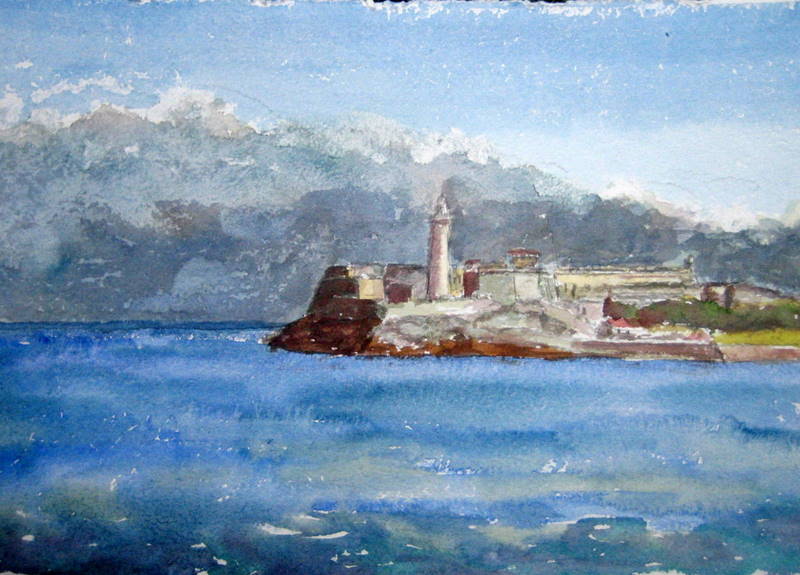 Vista del fuerte de San Carlos desde el Malecón, acuarela 24 x 35 cm