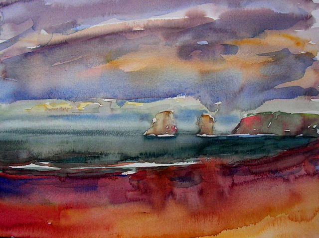 Playa de Hendaya, acuarela 23x31cm, 31_8_2002