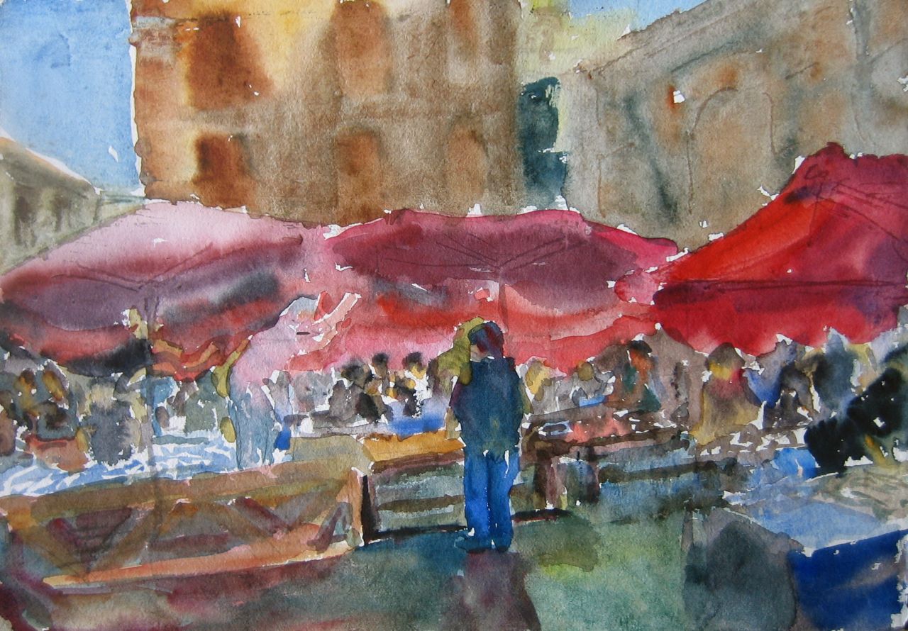 "Mercato del pesce" de Catania, acuarela 24x35 cm, (21/5/2009)